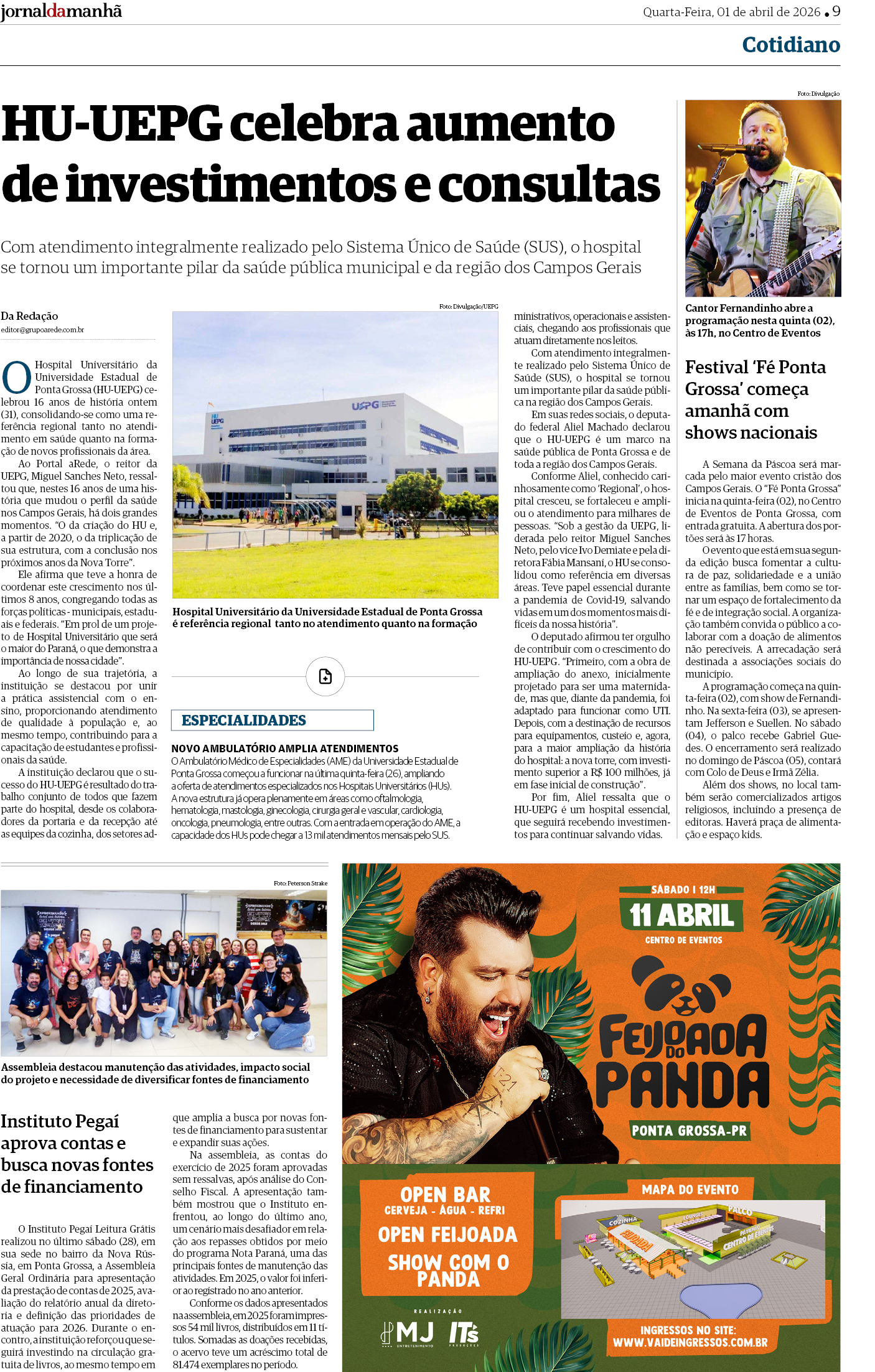 O Instituto Pegaí Leitura Grátis teve sua Assembleia Geral Ordinária repercutida em diversos veículos de comunicação. O encontro apresentou a prestação de contas de 2025, o relatório anual da diretoria e o planejamento das ações para 2026, reforçando a continuidade das atividades e a busca por novas fontes de financiamento.